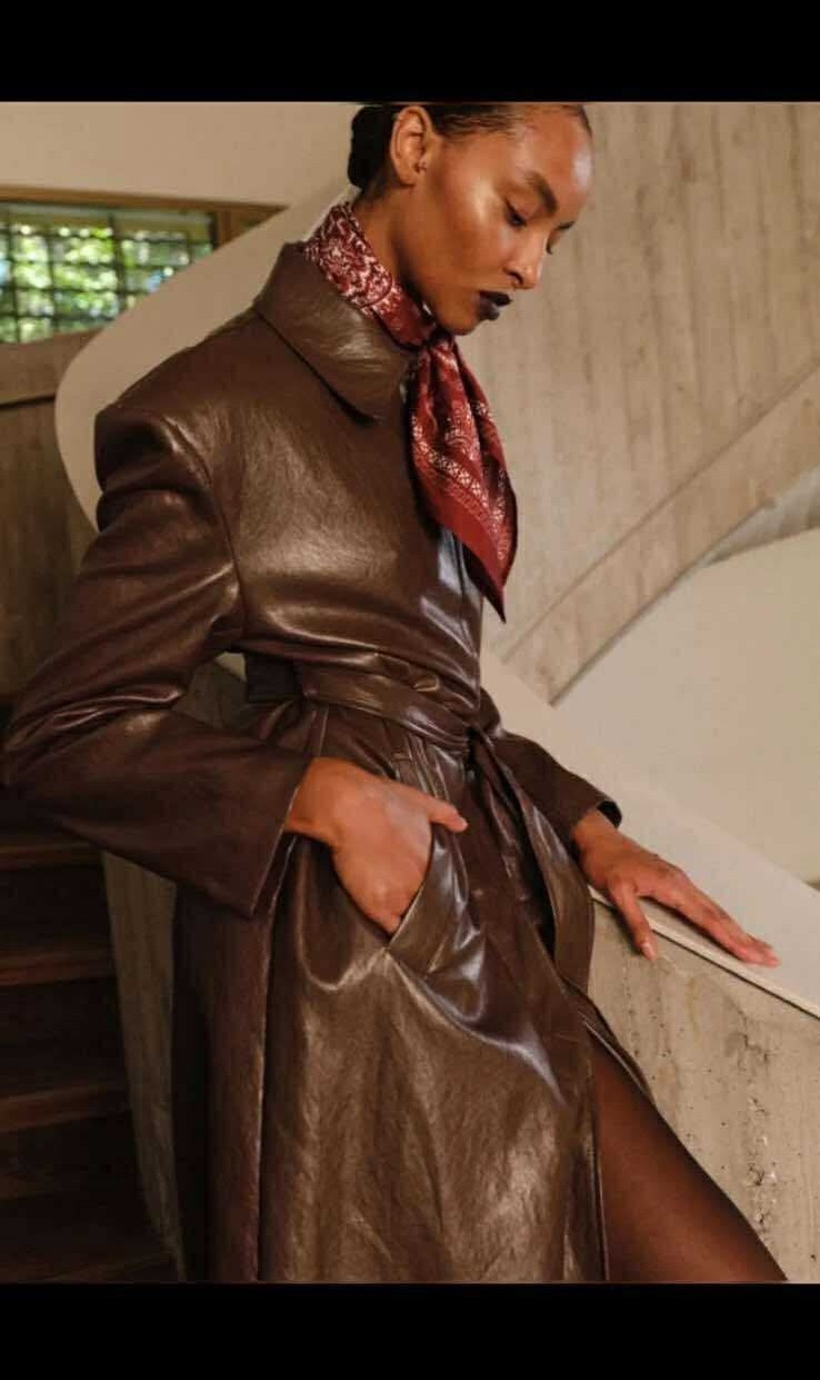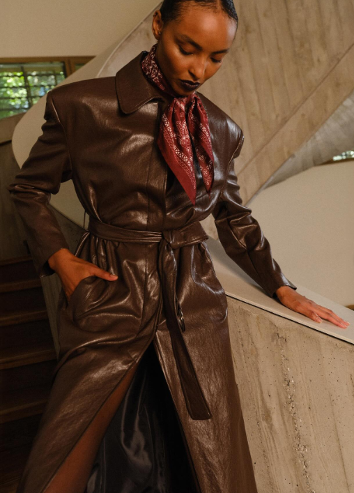 ✔ Iconic trench silhouette with a modern leather twist