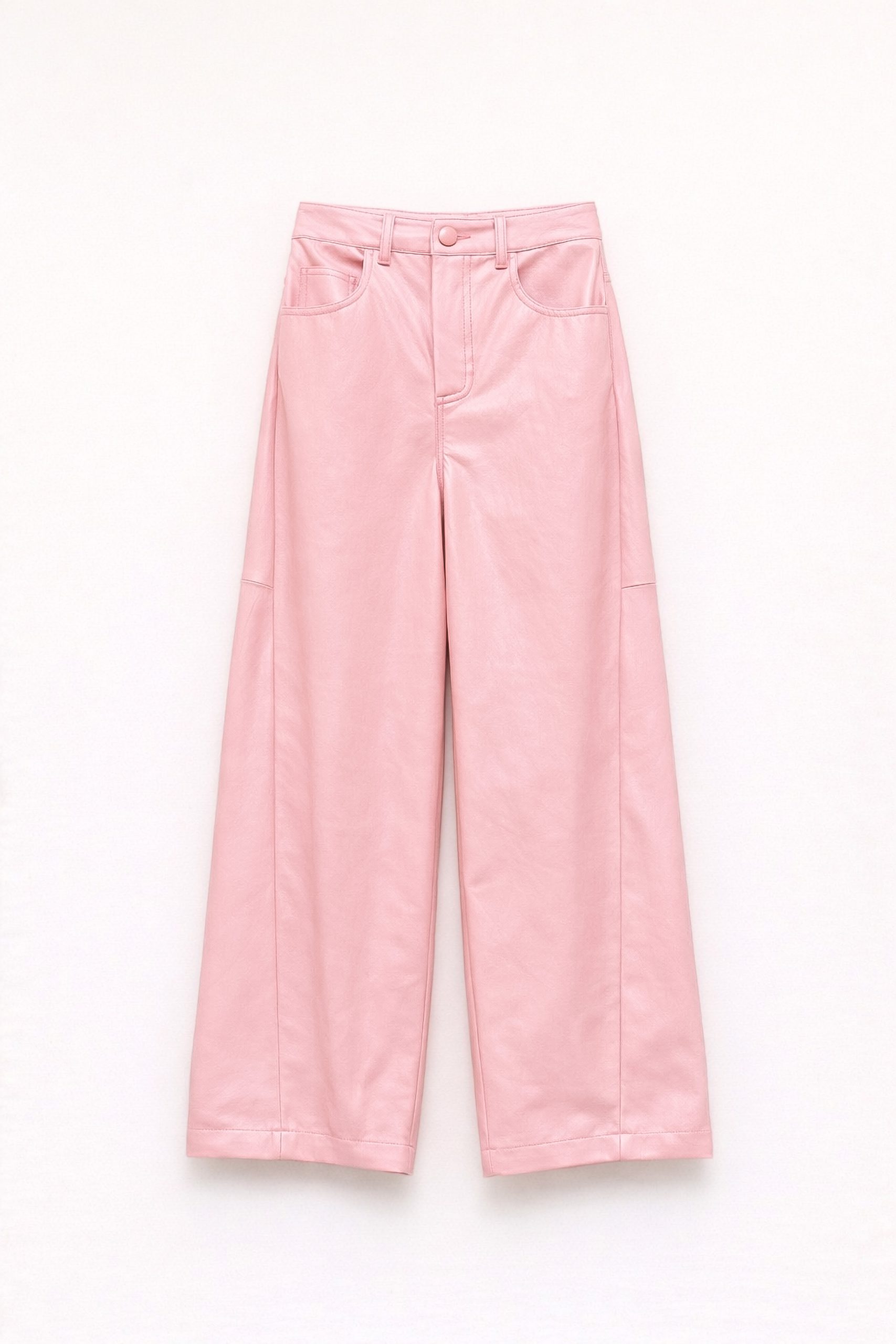 • Straight-leg synthetic leather trousers with belt loops