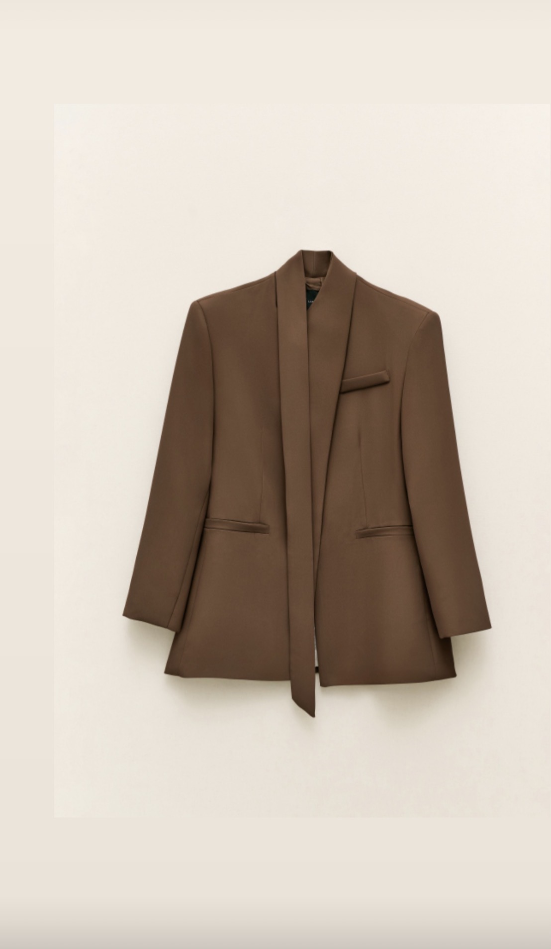 Blazer with padded shoulders. Welt pockets on the front. Neck detail with built-in scarf. Front button closure. Regular fit, available in size S/M/L