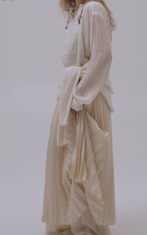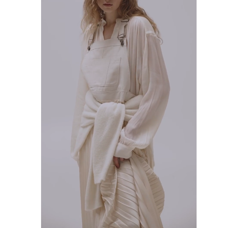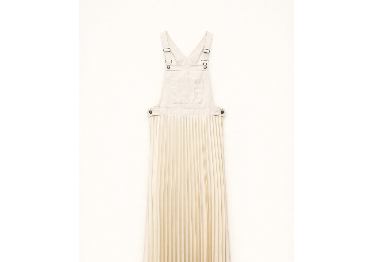 - Overalls combined with pleated skirt.