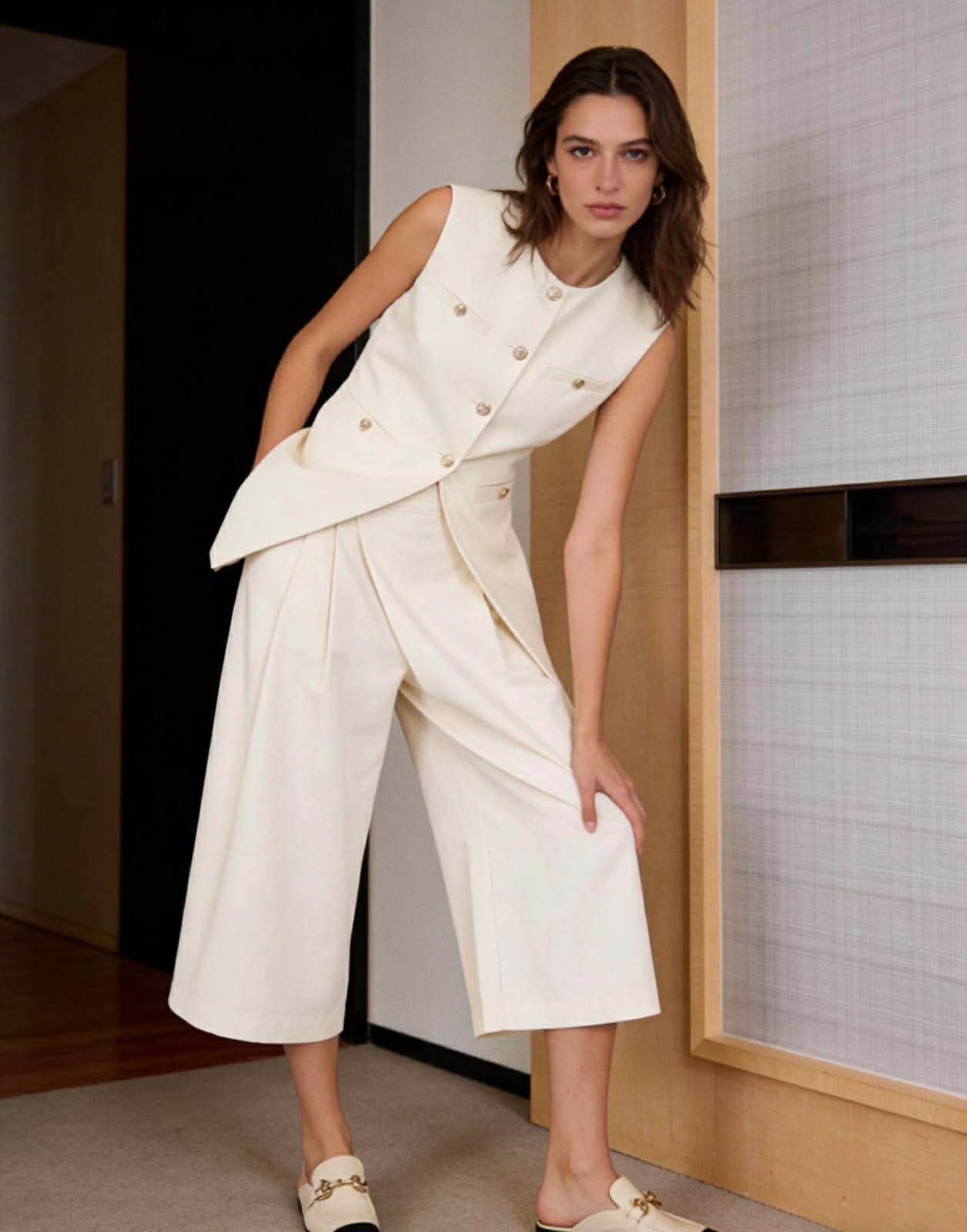 • Wide structured front pleats.